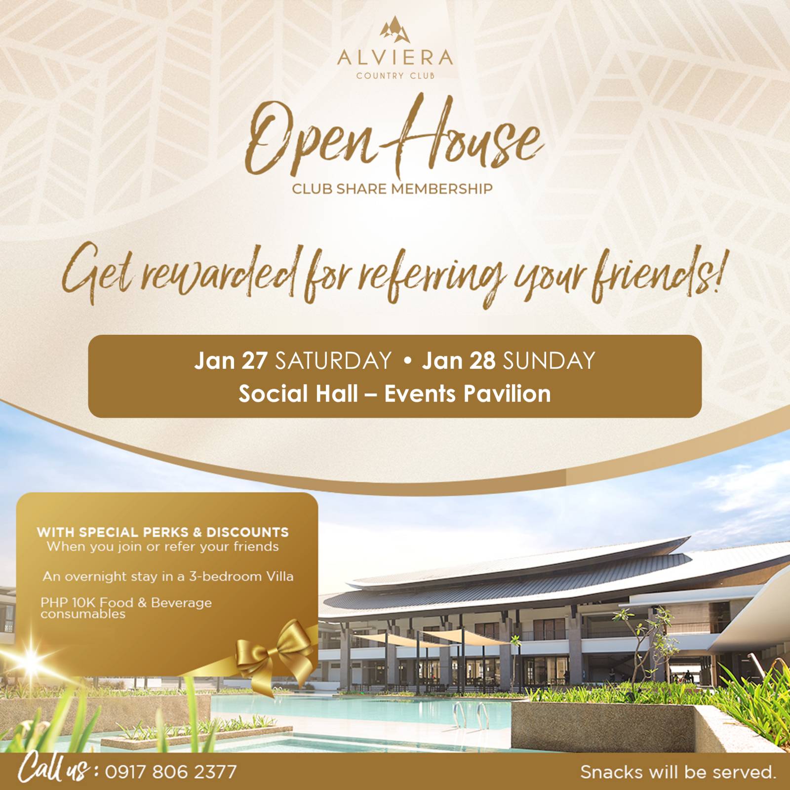 Experience luxury at Alviera Country Club's Open House on these dates: January 27-28, 2024! Discover top amenities, stunning landscapes, and an unmatched lifestyle. Join or refer a friend and get special perks and discounts. Call us at +63 917 806 2377.